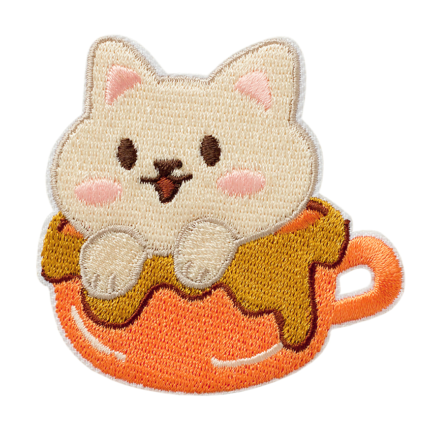 Verleihen Sie Ihrer Kleidung oder Accessoires einen Hauch von Charme mit dieser süssen Bügelapplikation! Die beige Katze, die fröhlich aus einer Tasse lächelt, zaubert ein lustiges und sympathisches Motiv. Einfach aufzubügeln und perfekt, um Ihre Lieblingsteile individuell zu gestalten. Ein Highlight, das garantiert Blicke auf sich zieht!